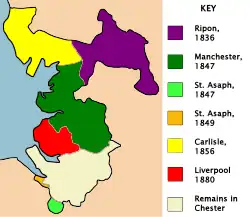 Il est créé en 1541 à partir du diocèse de Lichfield et Coventry et relève tout d'abord de la Province de Cantorbéry, avant d'être transféré à celle de York la même année. Au XIXe siècle, il subit de nombreuses pertes territoriales au profit des diocèses voisins.