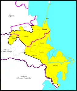 Le territoire diocésain comprend la ville de Chioggia, le sud de la province de Venise, l'île de Pellestrina ainsi que quelques communes de la partie orientale de la province de Rovigo.