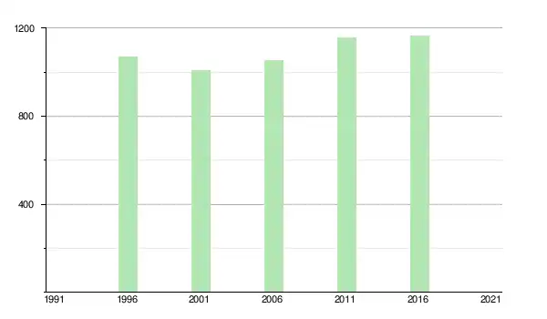 Le recensement de 2016 y dénombre 1123 habitants, soit 6,4 % de plus qu'en 2006[5].