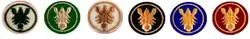 En fonction des scores réalisés la couleur et/ou le motif des badges et écussons diffère[6].