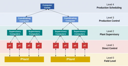 Les niveaux 3 et 4 ne sont pas strictement des processus de contrôle dans le sens traditionnel, mais où le contrôle de la production et l'ordonnancement ont lieu.