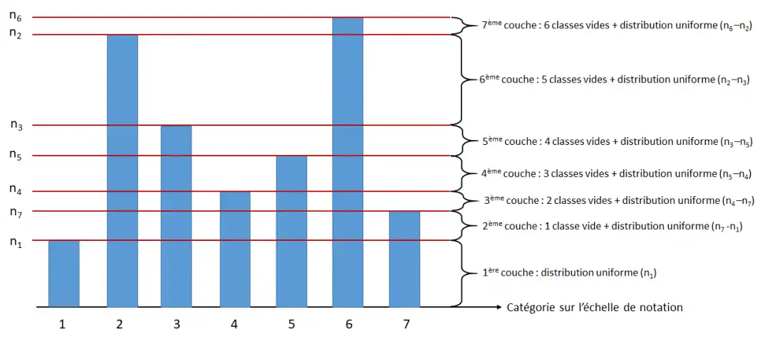 En revanche, toute distribution (portant sur une échelle de notation à K niveaux) peut être décomposée sous la forme d’au plus couches de distributions semi-uniformes[14].