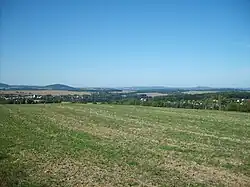 Le paysage de la région de Benešov peut être qualifié de « typiquement tchèque » en raison de son caractère. Il s'agit d'une Středočeská pahorkatina (cs) (plaine de Bohème centrale) légèrement vallonnée, dont l'altitude varie de 200 à 700 m au-dessus du niveau de la mer, mais la majeure partie de la région se trouve à une altitude d'environ 350-550 m. Un trait dominant frappant du paysage est le légendaire mont Blaník (632 m) au-dessus du village de Louňovice pod Blaníkem. La zone la plus élevée du district est ce que l'on appelle la Sibérie tchèque (cs) dans sa partie méridionale (entre Votice et Mezno). Le point culminant du district - Mezivrata (713 m) avec un émetteur de télévision - est également situé dans cette zone[3]. Benešovsko appartient également en partie à la vallée accidentée de la Vltava, en particulier une partie des rives orientales du barrage de Slapy. Le village le plus élevé du district est Miličín (617 m), tandis que le plus bas est Krhanice sur la Sázava (276 m).
