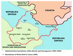 À la fin de la guerre d'indépendance de Bosnie-Herzégovine en 1995, le territoire de la municipalité de Brčko fut divisé entre la république serbe de Bosnie (49 % de la superficie) et la fédération de Bosnie-et-Herzégovine (51 % de la superficie) selon les accords de Dayton.