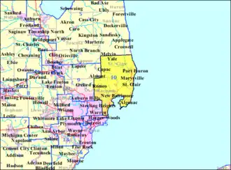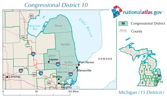 - ↑ (en) The New York Times, « Michigan 10th Congressional District Election Results »