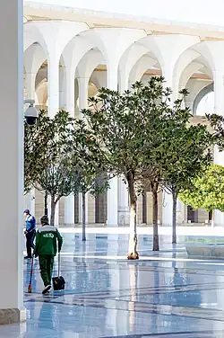 La mosquée est équipée de 900 caméras de surveillance et compte 600 travailleurs permanents[55].