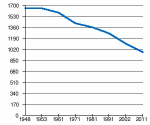 | 1 657 | 1 660 | 1 593 | 1 436 | 1 361 | 1 274 | 1 118[2] | 978[1] |