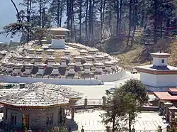 En juin 2008, une fois les chörtens achevés, la construction du temple Druk Wangyel Lhakhng a été entreprise. Il fait office de mémorial et célèbre les 100 ans de monarchie au Bhoutan. Les murs du temple sont décorés par des peintures illustrant l'histoire du royaume[9]. Certaines de ces fresques prennent un tour caricatural. Quelques-unes montrent le quatrième roi combattant les rebelles indiens dans la forêt et des moines avec un ordinateur portable et un avion Druk Air.