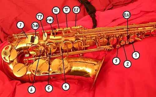 Les saxophones comportent chacun une vingtaine de clés. Tous les saxophones se jouent avec le même doigté. Cet article s'appuie sur le saxophone alto. Étant un instrument qui octavie, le saxophone n'a pas de doigté très complexe, car le doigté du registre grave se reporte de la même manière dans le registre aigu.