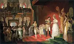La messe nuptiale et la ratification des vœux formulés par les époux à l’occasion de leur mariage par procuration sont célébrées le lendemain de l’arrivée de l’archiduchesse au Brésil[46]. Une fois leur union officialisée, le couple s’installe à la Quinta da Boa Vista, située dans le domaine du Palais de Saint-Christophe[47]. Dans les années qui suivent, Pierre et Marie-Léopoldine donnent naissance à sept enfants (voir la section « Famille »)[48].