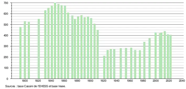 - ↑ Population municipale de référence en vigueur au 1er janvier 2025, millésimée 2022, définie dans les limites territoriales en vigueur au 1er janvier 2024, date de référence statistique : 1er janvier 2022.