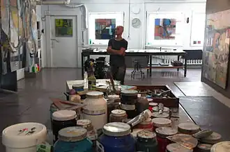 Les expositions Hundred Words for China Hundred Words made for China est une fois de plus l'association écriture-peinture. L'artiste présenta à la galerie MX (Hundred Words made for China) en simultané avec la galerie Can Art de Pékin (Hundred Words for China), 30 tableaux "cyclopéens"[29] nés de 100 mots (qu'il traduira par "sans mot") pour « explorer les harmonies/dissonances de la langue et des images »[29]. En cent mots, il conte son monde coloré et formel.
