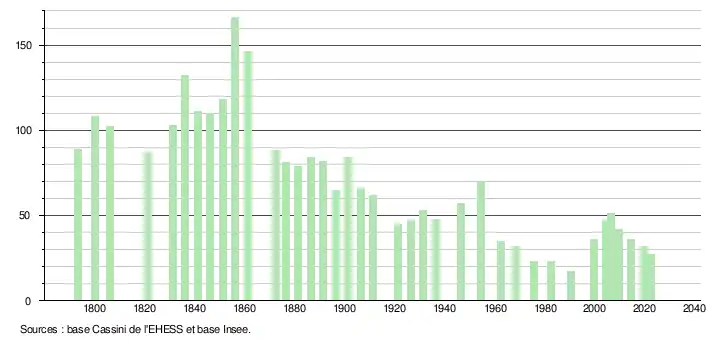 (Sources : Ldh/EHESS/Cassini jusqu'en 1999[17] puis Insee à partir de 2006[27].)