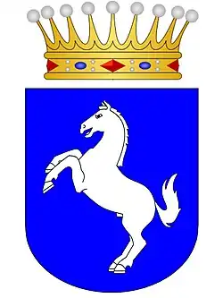 D'azur à un étalon d'argent sautant[2].