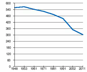 | 559 | 566 | 542 | 521 | 496 | 453 | 350[2] | 302[1] |