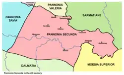 Carte de la province de Pannonia Secunda province, avec Bassianae