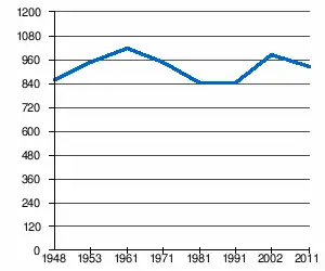 En 2011, l'âge moyen de la population était de 42,5 ans, 40,5 ans pour les hommes et 44,6 ans pour les femmes[8].
