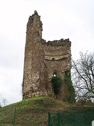 Aujourd'hui, seul le donjon cylindrique bâti au XIIe siècle[1], haut de 20 mètres, reste sur une faible motte castrale. Une ferme se penche[Quoi ?] sur les ruines.
