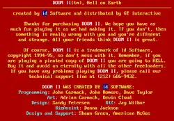 Doom II: Hell on Earth est un jeu vidéo de tir à la première personne (FPS) développé par id Software et publié sur MS-DOS par GT Interactive le 30 septembre 1994 en Amérique du Nord et le 10 octobre 1994 en Europe.