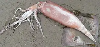 - ↑ (en) Just when you thought it was safe… giant squid terrorise Californian coast, article du quotidien The Guardian, publié le 20 juillet 2009.