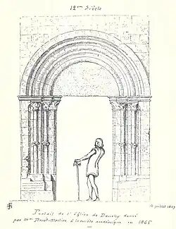 | Portail de l'ancienne église de Douchy. | Dessin du portail de l'église. |