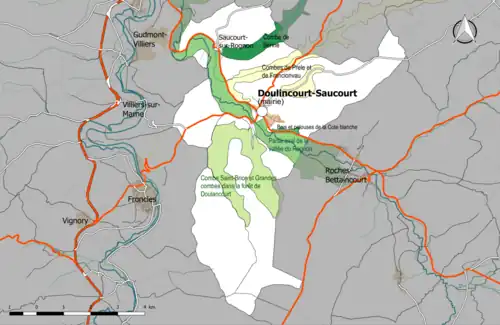 Le « massif forestier de Doulaincourt, de Vouécourt, de Froncles et de Donjeux » est une vaste ZNIEFF de type 2 qui s'étend sur 4 848 hectares et 7 communes, dont Doulaincourt-Saucourt, où elle occupe toute la partie sud de la commune au sud du Rognon et englobe la zone Natura 2000 de la « forêt de Doulaincourt ». Six grands types forestiers s'y distinguent : la chênaie pubescente, localisée à Froncles (la plus vaste et la plus typique du département), la hêtraie montagnarde sèche à Carex alba des versants exposés au sud et des plateaux, la hêtraie froide à Cardamine à sept folioles sur les versants exposés au nord, la tiliaie-érablaie sur les pentes d'orientation plus mésophile, la chênaie-hêtraie à Carex montana des fonds de combe et la chênaie-charmaie-hêtraie calcicole très largement développée sur les plateaux du massif[23].