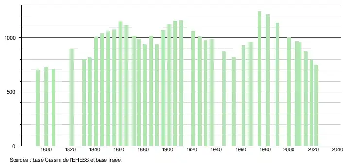 - ↑ Fiches Insee - Populations de référence de la commune pour les années 2006, 2007, 2008, 2009, 2010, 2011, 2012, 2013, 2014, 2015, 2016, 2017, 2018, 2019, 2020, 2021 et 2022.