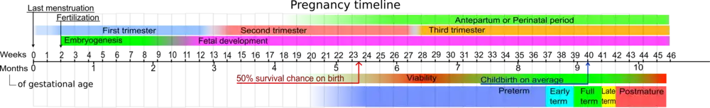Schémas basés sur les semaines d'aménorrhées (2 semaines de décalage avec l'apparition de la vie fœtale) c'est la 26e à 32e semaine qui marquent cette apparition pour le fœtus de cette capacité à recevoir le message nerveux correspondant à la douleur.