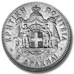 Entre 1900 et 1901, une drachme divisée en 100 lepta a été émise pour l'État de Crète fondé en 1898, à parité avec la drachme grecque. Ont été frappées des pièces de 1 lepton et 2 lepta en bronze, de 5, 10 et 20 lepta en cupronickel, et de 50 lepta, 1, 2 et 5 drachmes en argent. L'unification effective de l'île avec la Grèce a lieu en 1913.