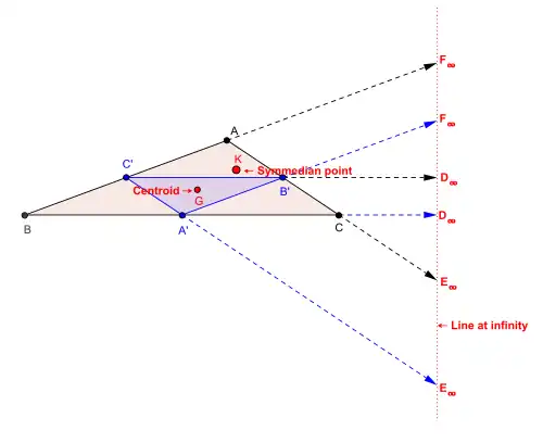 L'axe de l'homologie entre le triangle ABC et son triangle médian est à l'infini.
