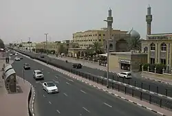 La ville de Dubaï est le premier port du pays (Jebel Ali) mais celui-ci se classe aussi neuvième du monde avec un trafic conteneurs de 14 472 000 teu en 2023[63]. Dubaï est la première ville des Émirats arabes unis. Elle fut créée dans une boucle du bras de mer qui s'insinue dans le désert et qui constitue un port naturel (Khor Dubaï). Le centre-ville, qui garde un caractère arabe, est constitué de petits immeubles et de ruelles étroites. Les nouveaux quartiers s'étalent quant à eux dans le désert et le long de la côte au nord et au sud, constituant avec les villes de Charjah et Ajman une agglomération de 2 500 787 habitants en 2006.