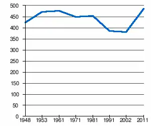 - 1 2 (sr + en) « Livre 20 : Vue d'ensemble comparative de la population en 1948, 1953, 1961, 1971, 1981, 1991, 2002 et 2011, données par localités) » [PDF], pages du recensement de 2011 en Serbie - Institut de statistique de la république de Serbie, (consulté le )