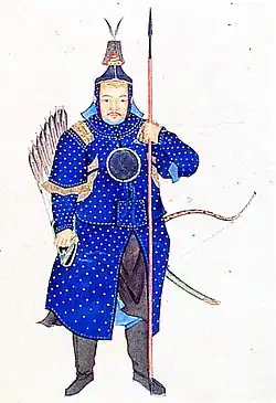 ) pour désigner l'ensemble du peuple qui constitue le cœur de son État. De ce fait, plutôt qu'un peuple ancien préexistant à son empire comme on l'a longtemps pensé, les « Mandchous » peuvent être vus à ce stade comme « un rassemblement de personnes créé de manière délibérée dans un but de conquête » (W. T. Rowe) et non comme une ethnie à proprement parler, ce qu'ils deviennent avec la consolidation de l'empire après 1644[5].