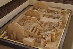 Le roi Zhou dispose d'un territoire qu'il administre directement, le domaine royal (wangji). Son centre se situe dans la vallée de la Wei, dans l'actuel Shaanxi central, qui est la base territoriale à partir de laquelle les Zhou ont organisé leur domination sur les régions voisines. Ils y disposent de deux capitales, Feng et Hao, situées face à face de part et d'autre de la rivière Feng (un affluent de la Wei), à 12 kilomètres au sud-est de la ville actuelle de Xi'an. Jusqu'à présent, les fouilles archéologiques n'y ont pas dégagé d'agglomération urbaine de cette période, sans doute en raison des nombreuses constructions qui eurent lieu dans cette région où furent par la suite établies les capitales de plusieurs dynasties impériales (Xianyang des Qin, Chang'an des Han et des Tang). Mais elles ont mis au jour les traces d'un complexe monumental sur le site de Mawangcun, et surtout des centaines de tombes aristocratiques ayant livré un riche matériel funéraire, notamment des bronzes inscrits, ne laissant pas de doute sur le statut politique majeur de la région sous les Zhou occidentaux[42]. La partie la mieux connue du domaine central des Zhou est la « Plaine de Zhou » (Zhouyuan), située au nord de la Wei, au pied du mont Qishan. Selon la tradition, c'est dans ce lieu (plus précisément le site de Qiyi) que se seraient établis les Zhou sous la direction de Danfu, le grand-père du roi Wu après leur migration depuis l'est. C'est en tout cas un centre administratif et cultuel majeur sous les Zhou de l'Ouest. On y a dégagé des palais à Fengchu et Shaochen. Le premier, plus vaste, est bâti sur une terrasse et organisé autour d'une cour centrale entourée de bâtiments, le tout isolé de l'extérieur par une enceinte, suivant des principes caractéristiques de l'architecture de la Chine du Nord aux périodes postérieures. De nombreuses tombes ont été dégagées dans la région, le groupe le plus impressionnant ayant été découvert en 2004 à Zhougongmiao, et pouvant comprendre notamment la tombe du duc de Zhou. Les nombreuses inscriptions sur bronze et sur os provenant de la Plaine de Zhou indiquent que d'importantes activités rituelles et administratives de la cour Zhou y avaient lieu[43],[44].