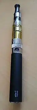 Le principe d'une cigarette électronique consiste à produire un aérosol imitant la fumée de tabac. La technique la plus courante consiste à chauffer le liquide (dit liquide à vapoter[11] ou e-liquide) par l'intermédiaire d'une résistance chauffante faisant partie de l’atomiseur (dispositif pouvant être appelé « clearomiseur », « tank », « RTA », « RDTA », etc. en fonction de son principe de fonctionnement).