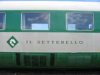 Durant la construction de la nouvelle rame, pour préserver le secret industriel, les ouvriers surnommèrent le train "Settebello", le nom d'une carte fétiche d'un fameux jeu de cartes italien « scopa ». Le nom fut ensuite dévoilé à la presse et adopté officiellement. À cette époque il était courant de baptiser les motrices c'est pourquoi le nom Settebello sera peint sur le flanc du train avec la carte correspondante.