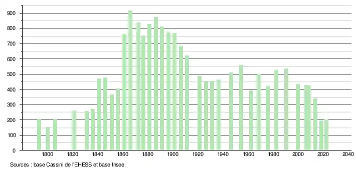 - ↑ Fiches Insee - Populations de référence de la commune pour les années 2006, 2007, 2008, 2009, 2010, 2011, 2012, 2013, 2014, 2015, 2016, 2017, 2018, 2019, 2020, 2021 et 2022.
