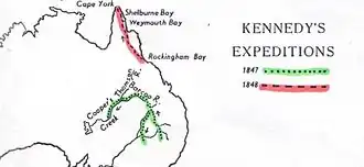 Pour sa dernière expédition, Kennedy a été envoyé dans le nord de l'Australie pour essayer de trouver une route par voie de terre pour relier le golfe de Carpentarie à Sydney.