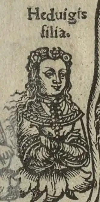 À la mort de sa mère, elle est désignée officiellement héritière du trône de Pologne. Elle est élevée par la troisième femme de Ladislas II Jagellon, Sophie de Holszany. En 1421, elle est fiancée au prince Frédéric II de Brandebourg, né en 1413 et qui n'a que 8 ans. Il faut attendre sa majorité légale pour célébrer le mariage, mais la princesse meurt, dix ans plus tard, en 1431, avant la cérémonie du mariage. Elle aurait été, selon certaines rumeurs, empoisonnée par sa belle-mère, la reine Sophie de Holshany. Une partie de la noblesse polonaise désirait avoir pour souverains le couple formé par Edwige et Frédéric (qui apprenait le polonais et la culture polonaise), plutôt que le fils de Sophie de Holszany, la troisième femme de Ladislas II Jagellon.