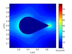 Si on considère maintenant une pointe comme une boule dont le diamètre est petit (faible rayon de courbure), on obtient un champ électrique dont la valeur tend vers l'infini à son voisinage. Ce champ électrique très important va contribuer à l'ionisation de l'air et ainsi l'amorçage d'un éventuel arc électrique.