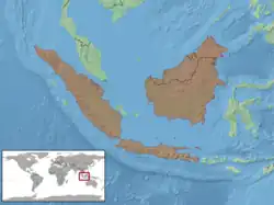 Cette espèce se rencontre à Java, à Sumatra et au Kalimantan en Indonésie et au Sabah en Malaisie[1].