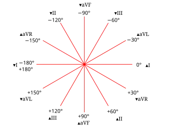 Axe hypergauche. Axe du cœur < −30° (surface du QRS positive en D1 et négative en D2-D3). Cette angulation évoque une surcharge ventriculaire gauche ou un hémibloc antérieur gauche au-delà de −45°.