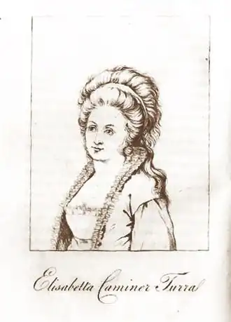 Fille de Domenico Caminer, Elisabetta naquit à Venise en 1751. Dès son enfance elle montra le goût le plus vif pour l’étude ; elle employait à la lecture tous les moments qu’elle pouvait dérober aux occupations ordinaires de son sexe. Son père, voyant ses heureuses dispositions, ne négligea rien pour les développer ; et, dès qu’elle fut en âge de lui rendre quelques services, il la chargea de mettre au net ses manuscrits et de classer sa correspondance. Dans les loisirs que lui laissait ce travail, elle apprit les langues étrangères. A dix-huit ans, elle traduisit en italien L'Honnête Criminel, ou l'Amour filial, drame de Fenouillot de Falbaire, qui fut représenté dans les principales villes d’Italie : c’était son premier ouvrage. L’extrême bienveillance que lui témoigna le public fut pour elle un encouragement, et depuis il ne parut pas sur les théâtres de Paris, de Londres, ou d’Allemagne une seule pièce remarquable qu’elle ne s’empressât d’en offrir la traduction à ses compatriotes. En 1771, elle épousa le docteur Turra de Vicence ; et quoiqu’elle eût suivi son mari dans cette ville, lorsque son père, à raison de ses vastes travaux littéraires[1], fut forcé de quitter la rédaction du Giornale enciclopedico, elle le continua du 82e au 233e volume. Malgré ses occupations, Élisabeth s’était chargée de donner des leçons de déclamation à quelques jeunes gens. Elle avait fait construire, pour exercer ses élèves, un petit théâtre qui n’était fréquenté que par une société choisie. Un soir que, fatiguée, elle entrait dans une chambre voisine du théâtre pour s’y reposer, un soldat ivre, qui ne la connaissait pas, voulut l’arrêter, et lui donna un coup de poing dans l’estomac. Cet accident lui occasionna une maladie dont elle mourut en 1796, à 45 ans, vivement regrettée de tous les amis des lettres. Elle entretenait une correspondance suivie avec la plupart des auteurs dramatiques de l’Europe. Parmi ses compatriotes, elle avait pour amis Francesco Albergati Capacelli, avec qui, disait-on, elle avait dû se marier : les abbés Fortis et Bertola, Francesco Gritti, le célèbre Carlo Gozzi, etc.