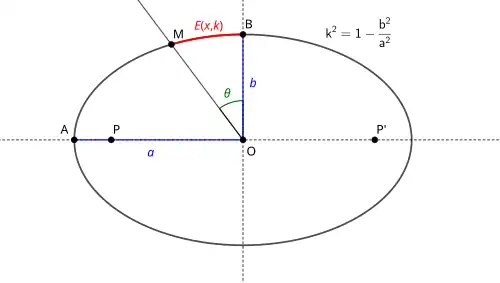 Cependant, ces intégrales ne s'expriment pas à l'aide des fonctions classiques (fonctions algébriques, trigonométriques, logarithmes ou exponentielles). Cette rectification, entreprise dès le début du XVIIIe siècle après la mise en place du calcul infinitésimal, conjointement à celle de la lemniscate de Bernoulli, a conduit à une nouvelle classe d'intégrales. Une telle intégrale est appelée intégrale elliptique incomplète de seconde espèce.