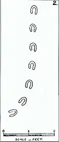 Certaines personnes suivirent les traces sur de grandes distances et dirent avoir constaté en outre qu'elles traversaient des enclos fermés et même un hangar. Le Reverend Musgrave fit divers croquis des empreintes individuelles et de la manière dont elles se suivaient, d'après nature, et avança d'autres hypothèses pour tenter d'en expliquer rationnellement l'origine.