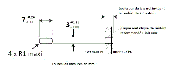- la plus récente, une fente de 6 × 2,5 mm, dénommée « Encoche Nano Kensington ». Cette norme est destinée aux PC dont l’épaisseur est très réduite.