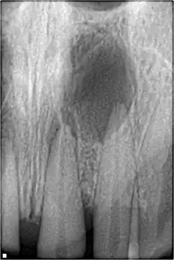 une infection bactérienne de la dent visible sur la radiographie dentaire
