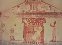 En plus de ces divinités, la porte qui mène aux enfers étrusques est représentée plusieurs fois dans les fresques des tombes peintes de la nécropole de Monterozzi : il s'agit d'une porte simulée placée le plus souvent sur la paroi faisant face à l'entrée :