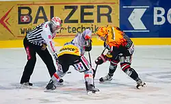 Les engagements se déroulant généralement sur des repères appelés cercle ou points d'engagement. Il y a neuf ronds sur la surface de la patinoire :