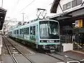 - ↑ Des exemples similaires existaient dans le passé. Aussi, comme l'Enoden, la ligne Keishin du chemin de fer électrique Keihan et la ligne Kumamoto Electric Railway Fujisaki, ont une voie combinée.